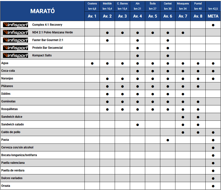 - 9 avituallamientos para la Marató dels Dements